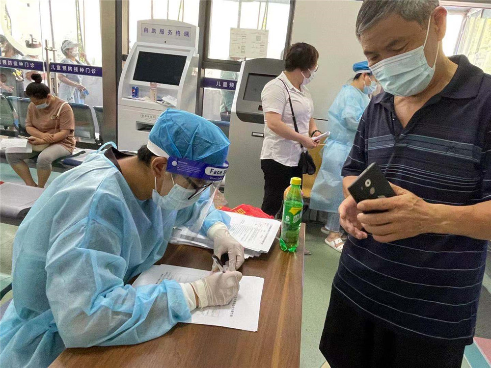 志愿者们牺牲暑假时间,自7月31日起,每天奔赴到不同社区助力社区疫情防控工作。有的志愿者到社区疫苗接种点做好引导工作,有的志愿者顶着炎烈日,装备齐整,逐栋入户摸排重点地区返锡、来锡人员,采集居民相关信息,为社区居民讲解核酸预制码申领流程,宣传新冠防疫知识。遇到老年人居多的小区,交校志愿者们主动耐心帮助他们注册育苗通和申领核酸检测预制码,细心讲解最新防疫政策及育苗通二维码和预制码使用方法,志愿者还对不便申领人员进行备注,便于社区后期统一管理。此外,志愿者还积极做好电话联络、预约上门、数据录入等工作。