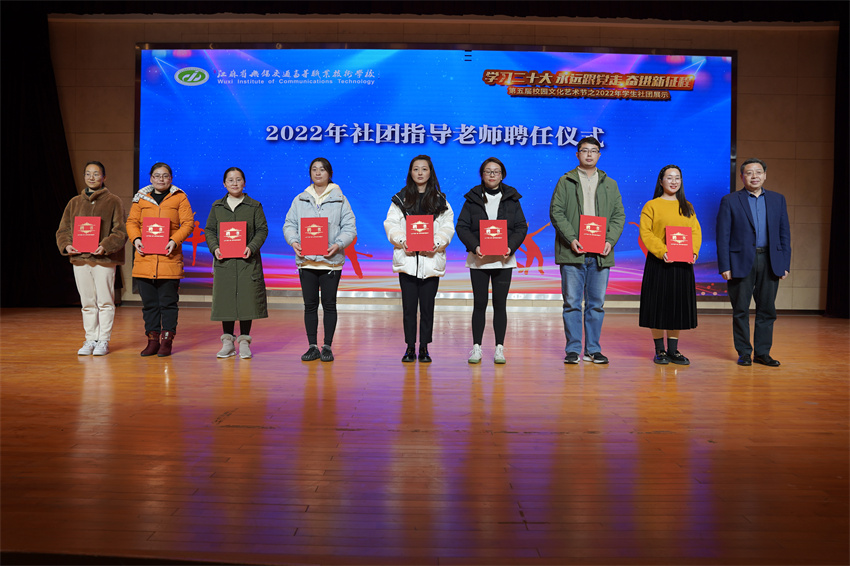 在社团展示活动中,举行了社团指导老师聘任仪式和2021年度优秀学生社团颁奖。校党委书记、校长李虎为指导老师代表颁发聘书,校党委委员、副校长倪依纯为优秀学生社团颁发荣誉证书。