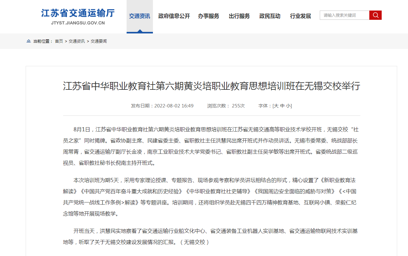 江苏省交通运输厅:江苏省中华职业教育社第六期黄炎培职业教育思想培训班在无锡交校举行