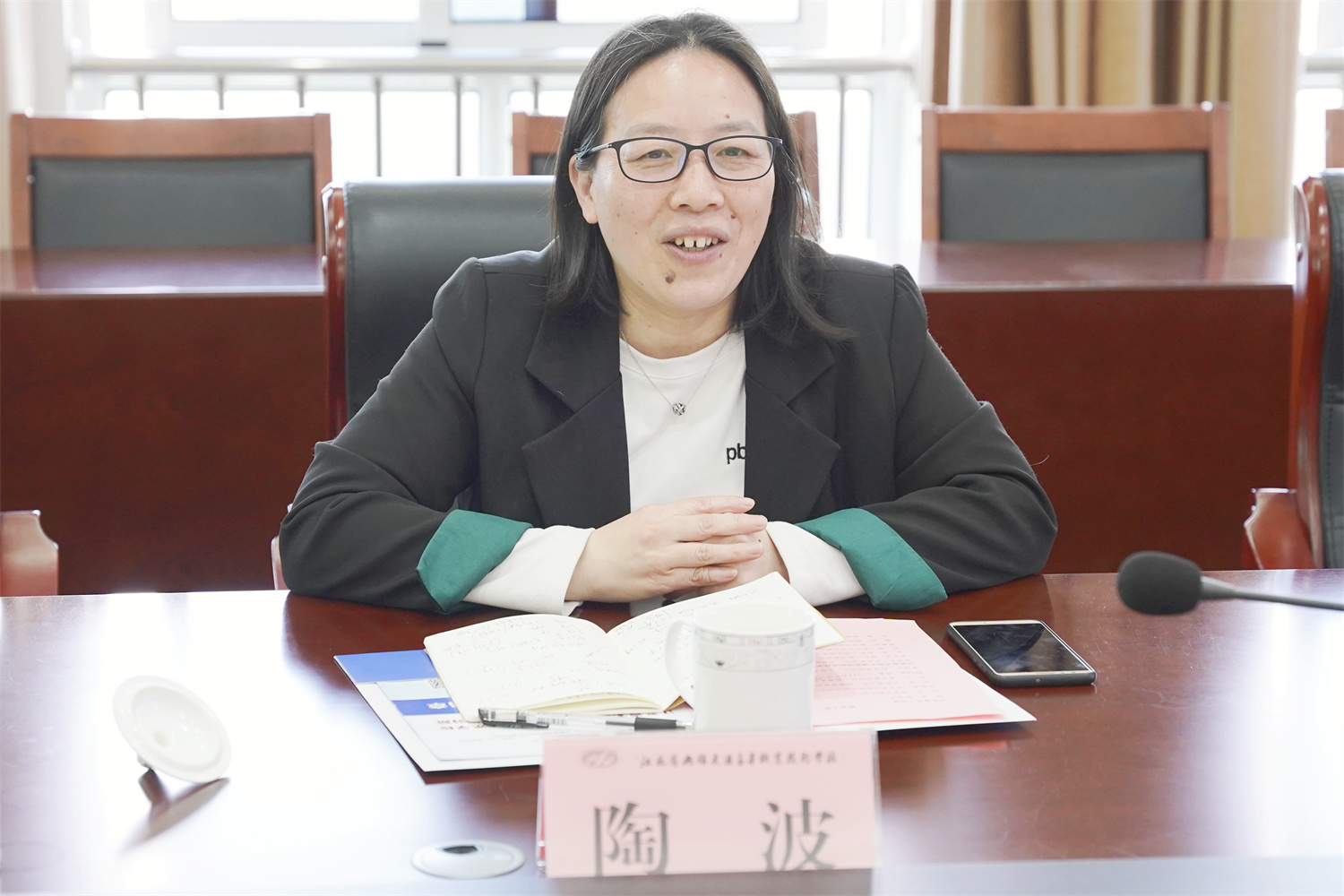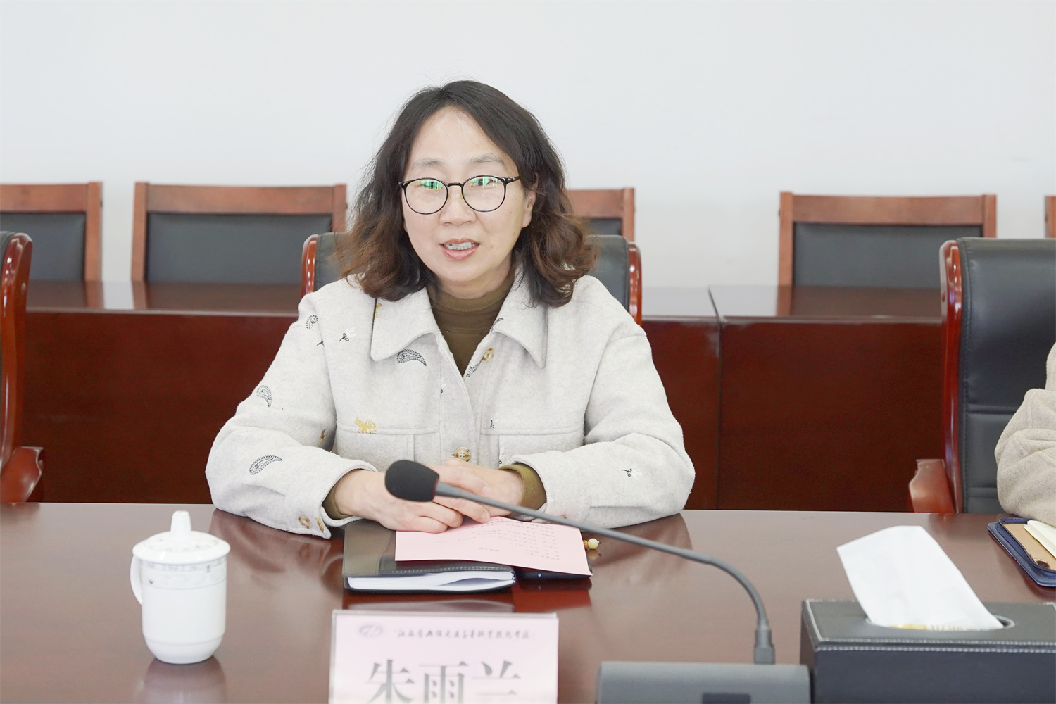 参观后,双方在512会议室开展了座谈交流。朱雨兰对陶波一行的到来表示热烈的欢迎。双方就船模设计与制作相关实验室建设、课程设置、教学组织等进行了讨论和深入交流,并就资源共享实现优势互补达成共识。