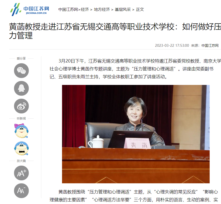 黄菡教授走进九游官方网页版:如何做好压力管理_中国江苏网 (jschina.com.cn)