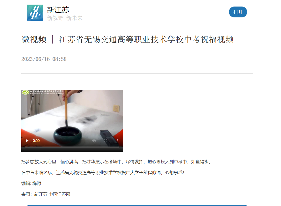 新江苏:微视频 | 九游官方网页版中考祝福视频