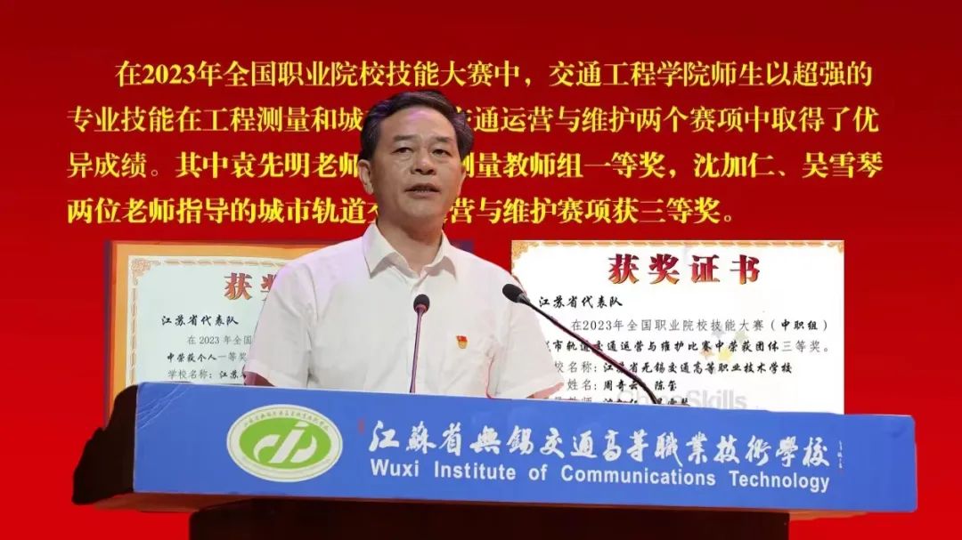会上,校领导宣读了江苏省交通运输厅第39个教师节慰问信,向在岗位上辛勤耕耘30年的教师颁发证书。现场表彰了学校第五届“最美教师”,为获得全国职业院校技能竞赛奖项的选手颁奖。同时,举行新入职教师宣誓的仪式,并为退休教师代表献花。