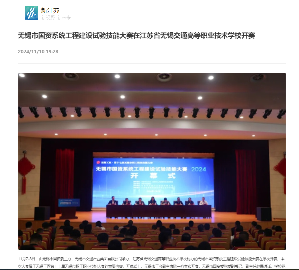 新江苏:无锡市国资系统工程建设试验技能大赛在九游官方网页版开赛