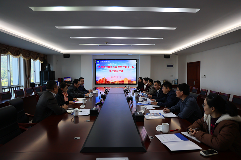 11月21日,韩国国立江原大学企划支援处长、对外协力官尹姬俊一行来我校访问交流,这是韩国国立江原大学第二次来我校访问交流。学校党委书记、校长李进,学校党委委员、副校长王珏出席会议。