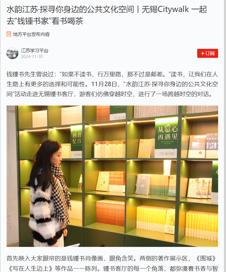 学习强国江苏学习平台:水韵江苏·探寻你身边的公共文化空间丨无锡Citywalk 一起去“钱锺书家”看书喝茶