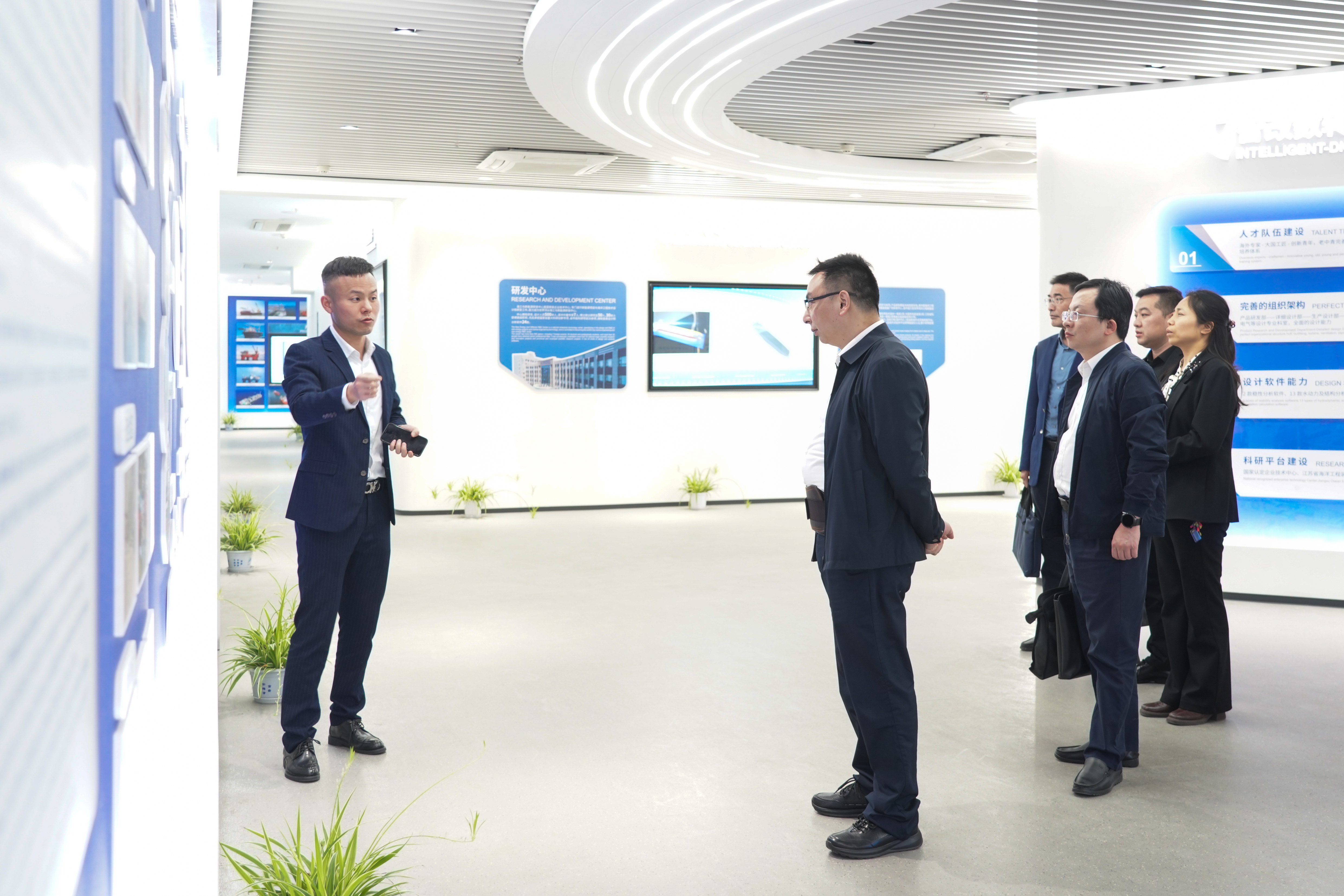 抵达企业后,校领导在企业负责人陪同下,参观了文化展厅与生产一线。展厅内,大型船舶构件的精密制造工艺、先进的焊接技术和有序的装配流程,展示了船舶工业的雄厚实力与精湛技艺。校领导与技术人员交流,了解生产细节和行业前沿技术应用,为学校专业教学收集了第一手宝贵的资料。