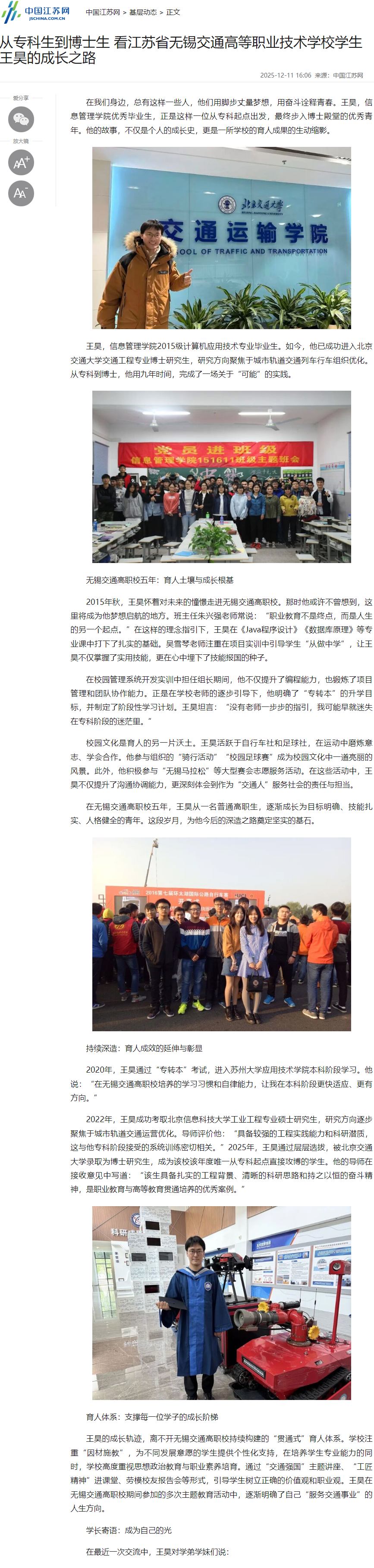 中江网:从专科生到博士生 看九游官方网页版学生王昊的成长之路