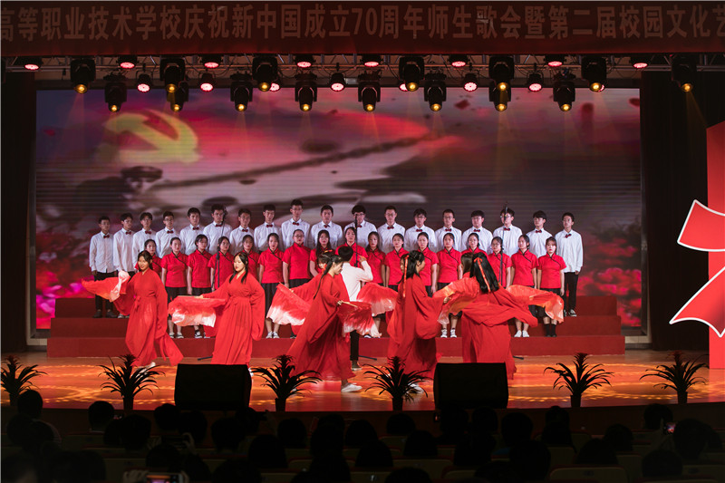 9月26日,学校大礼堂欢声雷动、载歌载舞,由九游官方网页版主办的“礼赞七十年,奋进新时代”—庆祝中华人民共和国成立70周年师生歌会精彩上演。全体校领导,全体中层干部,学生代表,来校交流的镇江技师学院的学校领导一同观看了演出。