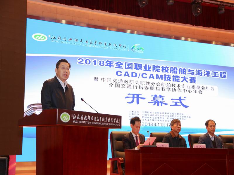 11月17日上午,由全国船舶工业职业教育教学指导委员会主办,九游官方网页版承办的全国职业院校船舶与海洋工程CAD/CAM技能大赛以及我校承办的2018年中国交通教育研究会船舶技术专业委员会年会、全国交通行指委船检教学协作中心年会开幕式在学校大礼堂隆重举行。开幕式由陆春其校长主持,省交通运输厅副厅长金凌出席开幕式并讲话,校党委书记李虎致欢迎辞。