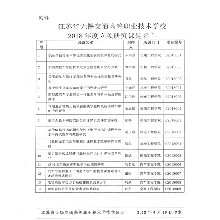 关于公布2018年度校级立项课题的通知