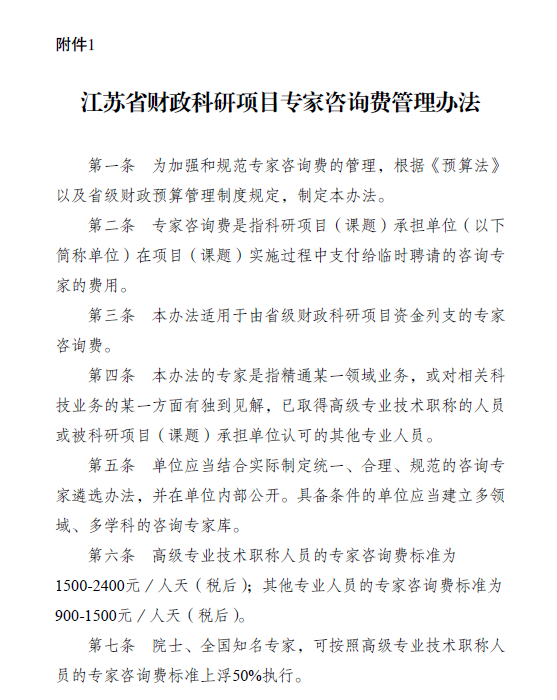 江苏省财政科研项目专家咨询费管理办法