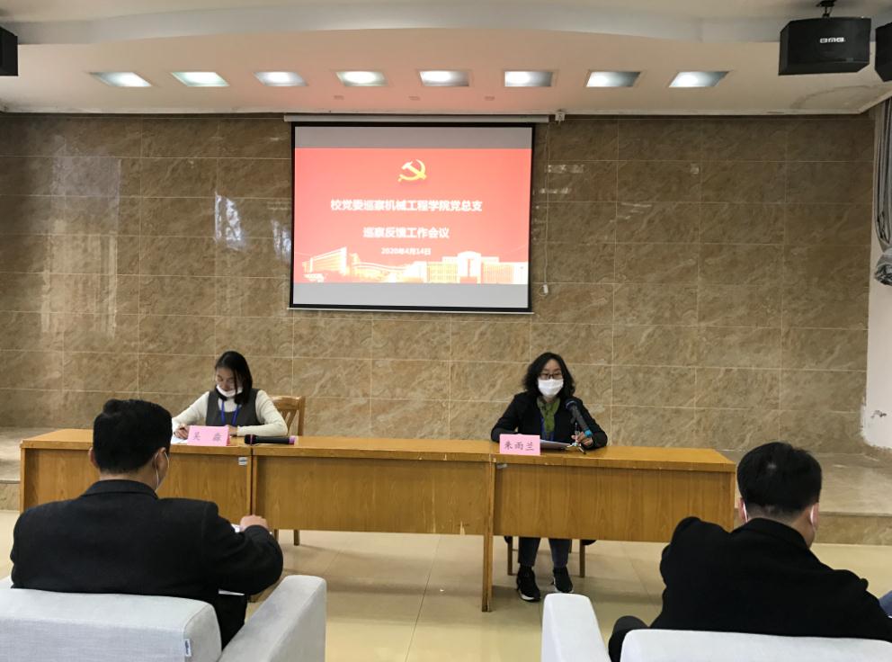 2020年4月14日下午,学校党委巡察组向机械工程学院党总支(锡澄校区管理办公室)反馈巡察意见,学校党委副书记、纪委书记、巡察组长朱雨兰出席会议,党委巡察组成员,机械工程学院、锡澄校区管理办公室全体教职员工参加了会议。会议由机械工程学院党总支副书记吴淼主持。