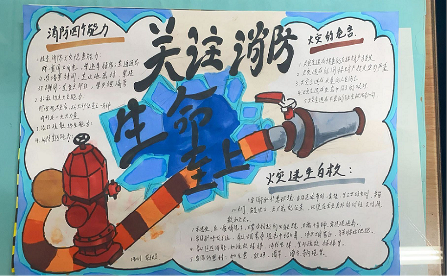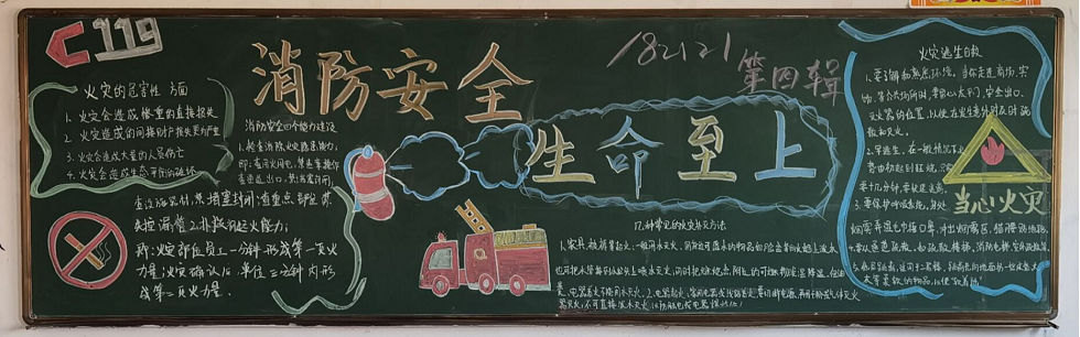 11月份消防安全宣传月活动持续开展,各学院班级积极组织宣传教育活动。各班级以“关注消防,生命至上”为主题开展黑板报和手抄报的展示活动,同学们通过网络、图书等渠道搜集消防知识素材,经过构思谋划出版了一期图文并茂、内容丰富的专题黑板报和手抄报。各学院通过收集汇总,细致评定在班级和宣传栏中展示了优秀作品,通过活动不仅锻炼了广大同学的组织能力,更是一次消防知识学习和普及的良好机会,提高了广大同学的消防安全意识。