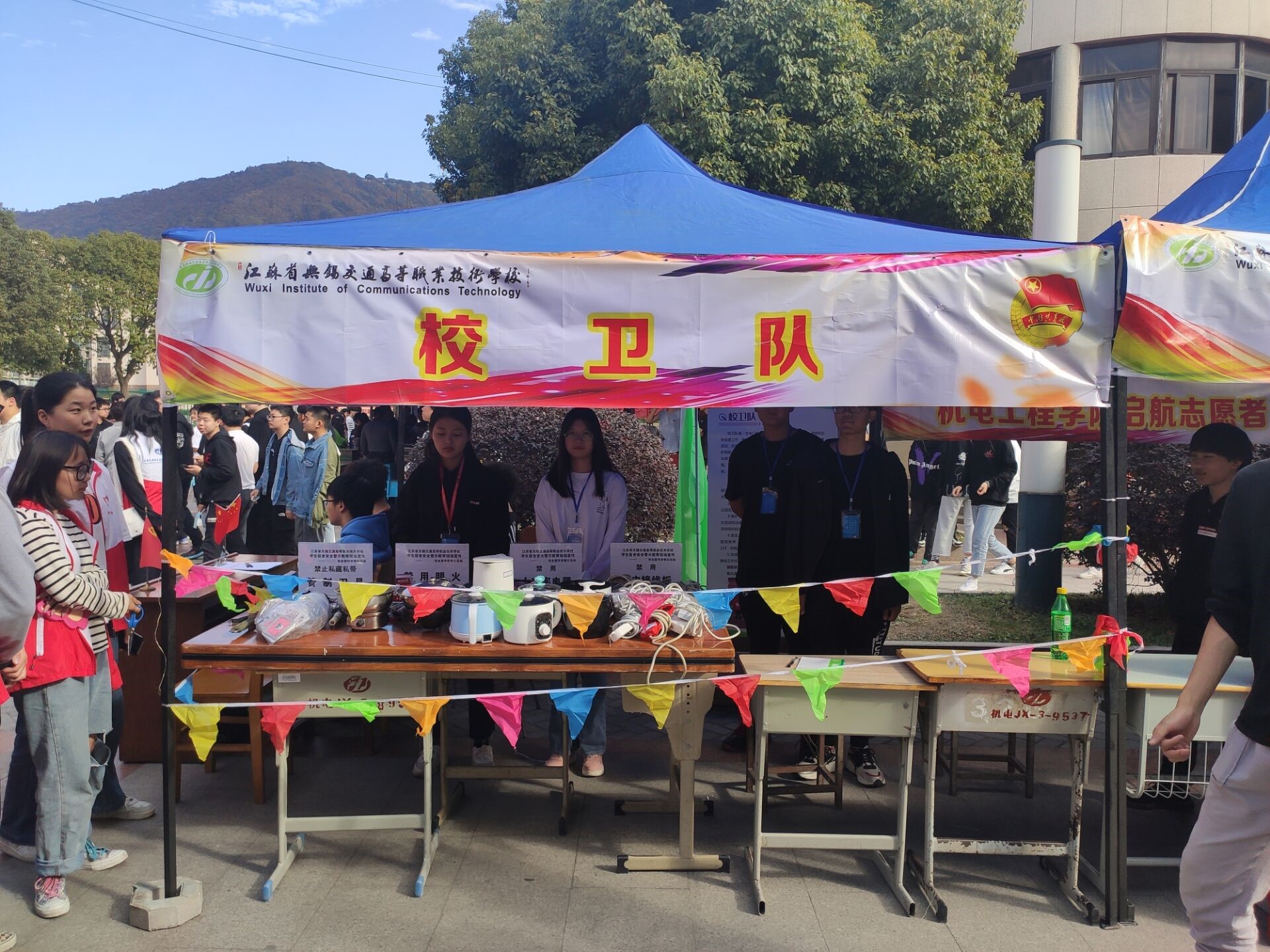 11月18日下午,学校组织学生社团集中展示活动,展示现场人头攒动,展位特色鲜明。学校校卫队的同学们也积极布展,开展安全主题宣传展示。校卫队是在校安全保卫处和学生工作处指导下开展学生安全宣传教育活动学生组织,这只队伍在日常校园工作中,根据学校安全工作总体要求,开展系列性多主题的安全宣传教育活动,贴近广大学生生活学习实际,开展交通、消防、治安、法制等宣教活动,并积极协助值班老师对校园、宿舍等场所进行安全巡查,及时发现和预警学生中的矛盾和违纪事件,为学校和老师及时化解学生矛盾、处置突发事件做好预警工作。