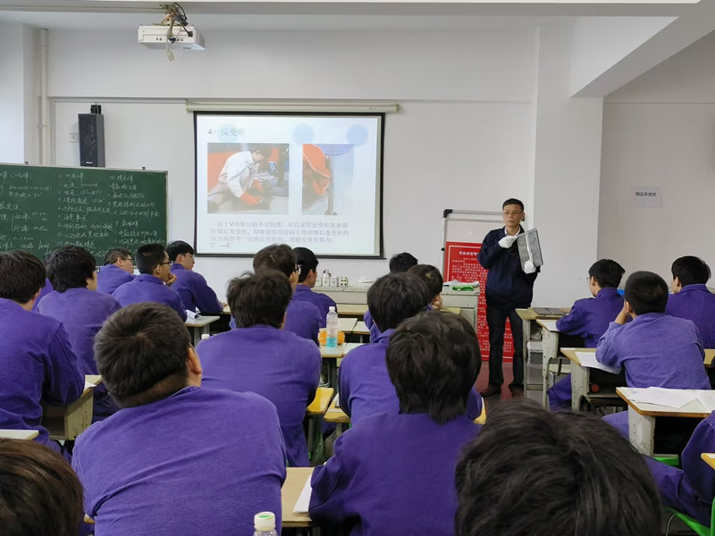 在课堂上,张宏伟老师通过南京长江大桥桥身关键节点处焊接技术引入新课内容。首先分别介绍了NBC-350焊机、ER50-6焊丝、12mm厚Q345钢板、辅助工具等焊接设备与材料,接着介绍焊接的工艺规程包括工件的准备、坡口清理、拼装定位间隙、焊点分布的内容,然后讲述了焊接操作要领包括安全操作的执行、坡口加工、清理方法、拼装定位的间隙和焊点分布以及反变形。最后利用录制好的操作视频给学生进行讲解,等学生牢记操作要领后,再去工位上进行实操演练,并进行巡回指导。