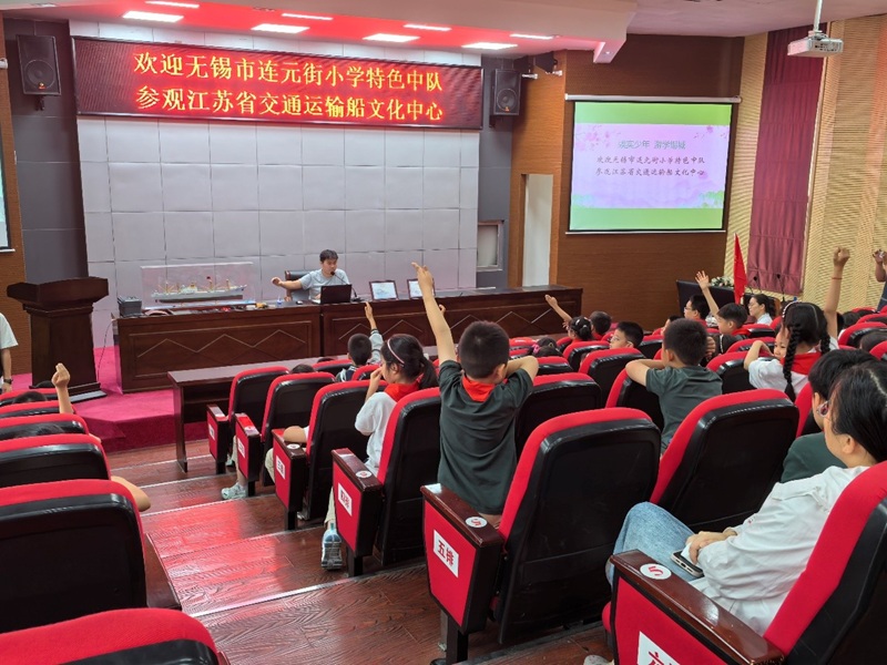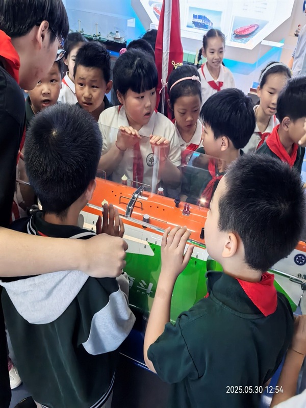 参观完成后,学院还组织了“深蓝社”获奖技术能手与同学们的交流互动活动,在听完了生动有趣的船舶制作过程,紧张刺激的船模竞赛经历后,小朋友们兴趣盎然,争先恐后地提出了各种感兴趣的问题。这种"专业场馆+思政课程+互动交流"模式,既彰显了学校船文化中心的科普教育功能,也为锡城中小学思政教育提供了创新样本,中心更多的创举,必将为少先队员们播下更多爱国奋进的种子,把红船精神与船舶科技联系起来时,教育的种子已然生根!