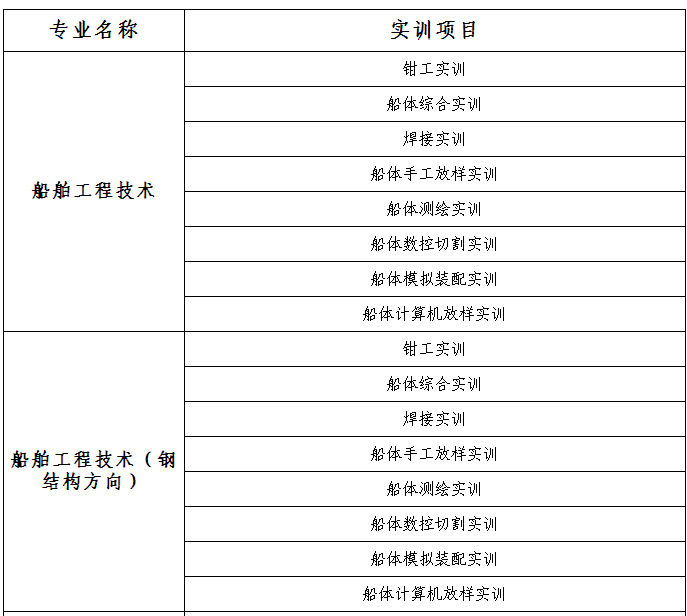 船舶工程学院各专业实训项目