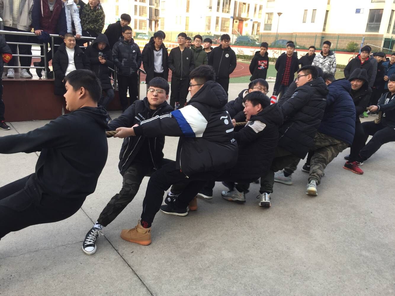 为丰富全体学生的精神文化生活,促进在学生们之间的交流,发扬团队精神,增强凝聚力,船舶工程学院于2018年12月17日下午4点举办了拔河比赛。