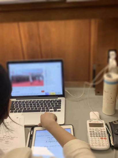 两周前,本应该,背着书包,穿上校服,充满期待地走进校园,开展新学期的生活;本应该每天早早起床,坐在教室里,听一个假期都没有听到的,老师们的讲课声;本应该走进饭堂,吃着食堂里香喷喷的饭菜,看见彼此最美的笑脸;本应该,奔跑在学校的跑道上,迎面接住可能飘来的花瓣……一场突如其来的疫情,打破了正常的节奏——学生们只能在家里视频班会时看到彼此,只能在网上上课。不过,他们还是那么地认真,努力,听得津津有味。虽然,隔着屏幕,可是师生的心却没有距离。