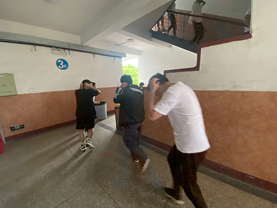 伴随着急促的警报声,锡澄校区防震演练正式拉开了帷幕!校区办褚主任发出口令:“现在地震来袭,请同学们紧急避险”,听到口令后,全体教师和楼道疏通人员迅速到达指定位置并积极开展相关工作。