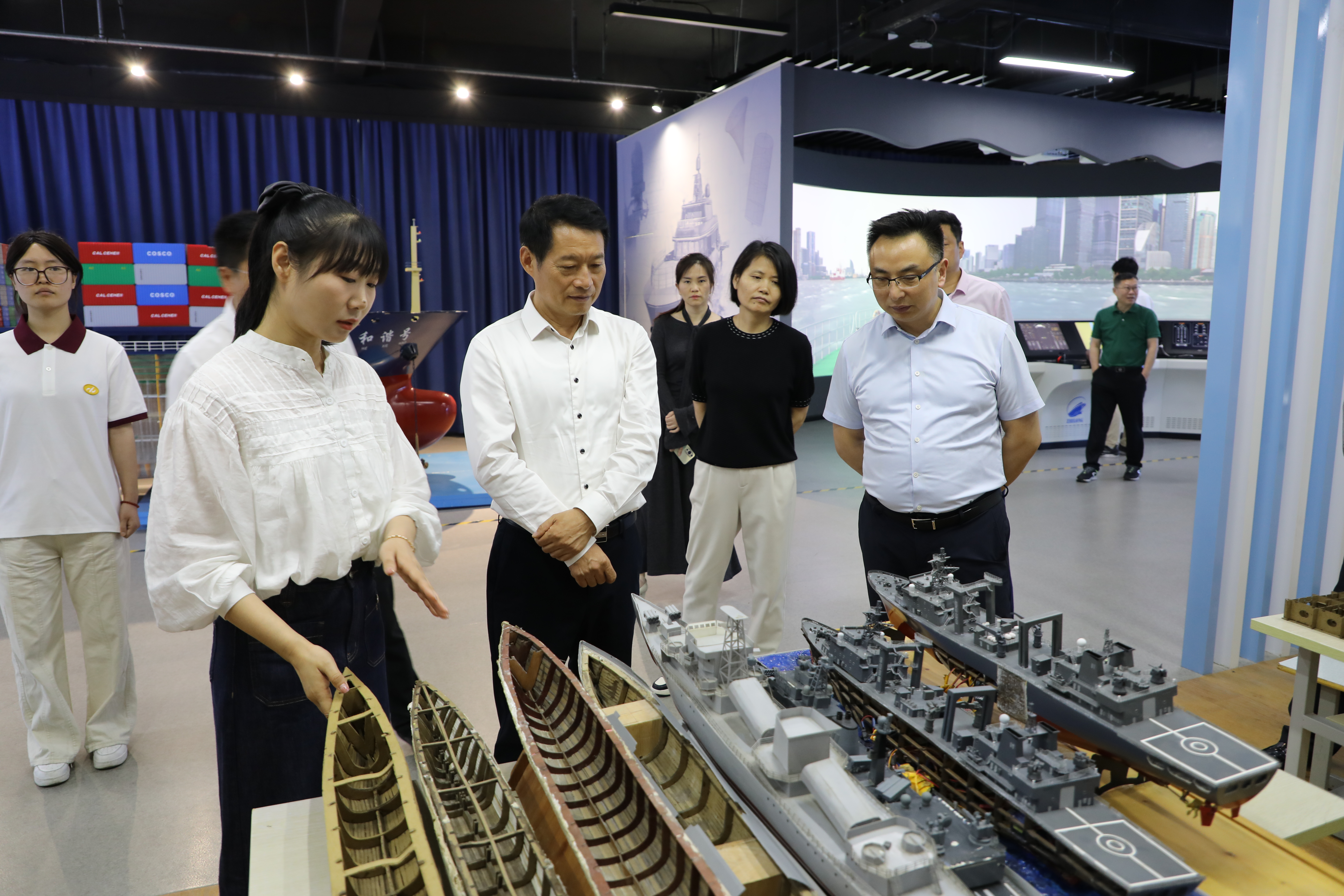 调研团队先后实地考察了学校船文化中心、航空实训基地和现代物流综合实训基地。