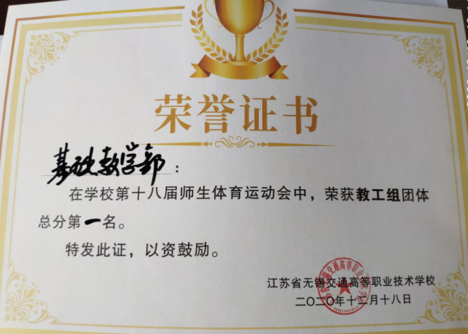 为响应党的十九大关于提升全民健康素养、推动全民健身的号召,倡导健康生活,12月17日-18日,由基础教学部体育教研室承办的趣味运动会在操场拉开帷幕,经过两天的精彩角逐,基础教学部团队荣获教工组第一名。