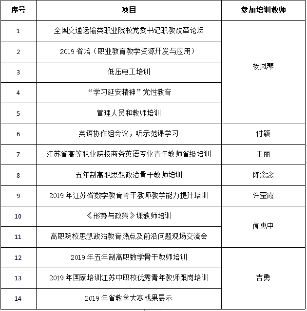 2019年度基础教学部教师参加培训情况