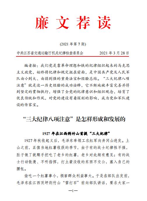 廉文荐读2021年第7期——“三大纪律八项注意”是怎样形成和发展的