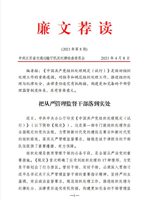 廉文荐读2021年第8期——把从严管理监督干部落到实处