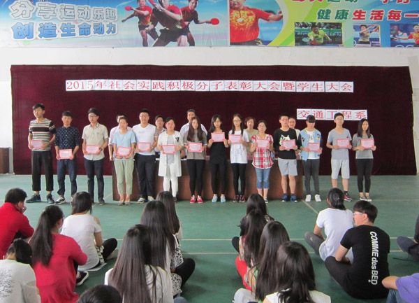 2015年5月28日下午,交通工程系在学生活动中心召开2015社会积极分子表彰大会暨学生大会。我系金龙老师主持召了本次大会,系部主任陈建明老师、副主任邹定南老师、党支部书记毛兰霞老师、团总支书记李俊老师以及交通系全体学生参加了本次大会。