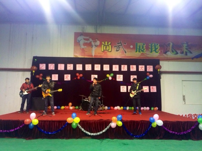 总结表彰大会结束后,伴随着深情动人的朗诵《中国梦》,迎新晚会拉开了序幕。小品《审贼》幽默搞笑,表演夸张,引得现场笑声不断;快舞让现场观众眼前一亮;吉他社表演新颖独特,现场气氛热烈。