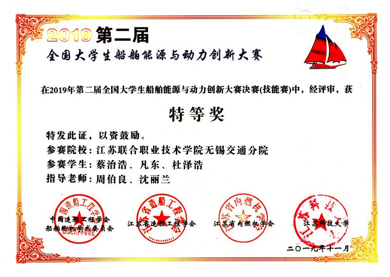 我校在第二届全国大学生船舶能源与动力创新大赛中喜获特等奖