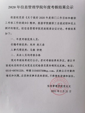 2020年信息管理学院年度考核结果公示
