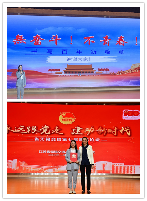 张心怡老师所演讲的主题围绕“承百年荣光,扬青春斗志”展开。不忘初心,牢记使命,张老师用激昂的语言讲述了党的百年风雨历程,用真挚的情感表达出对党的崇高敬意,表达了凝心聚力跟党走,建功立业新时代的决心。优异的表现获得参会人员热烈的掌声并最终赢得学校第七届青年论坛教师组一等奖。