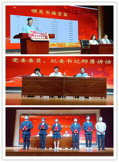 开学典礼在国歌声中拉开帷幕。首先是新生班兼职辅导员助理聘任仪式,蒋红梅副院长向他们表达了祝贺与期望,希望他们能够关爱学生、关注学生,谨言慎行,作为学生干部,能够向学生传达正能量,做好新生班级建设工作。新生班班主任代表戴丽君老师的发言,让新生们坚定了自己的奋斗目标,也更加清晰地认识到作为新时代中国青年身上所肩负的责任。老生代表学生会主席吴沁尧分享了自己的在校感悟与生活经验,为新生们往后进入社会、奉献社会打下了坚实的基础。新生代表221612班姚明月上台发言,她表示要努力学习、提升自我,励志为同一届学生树立一个优秀的学习榜样。郑智飞院长为优秀的新生代表颁发书籍盲盒,表现出学院对2022级新生的激励与关怀。最后是党委委员、纪委书记邢勇从持续学习、保持韧劲、团结合作和爱惜自己四个方面,充分向学生说明了学习的重要性,不仅要提升能力,更要提升素养,充分展现出学院深厚的文化底蕴及光明的未来。