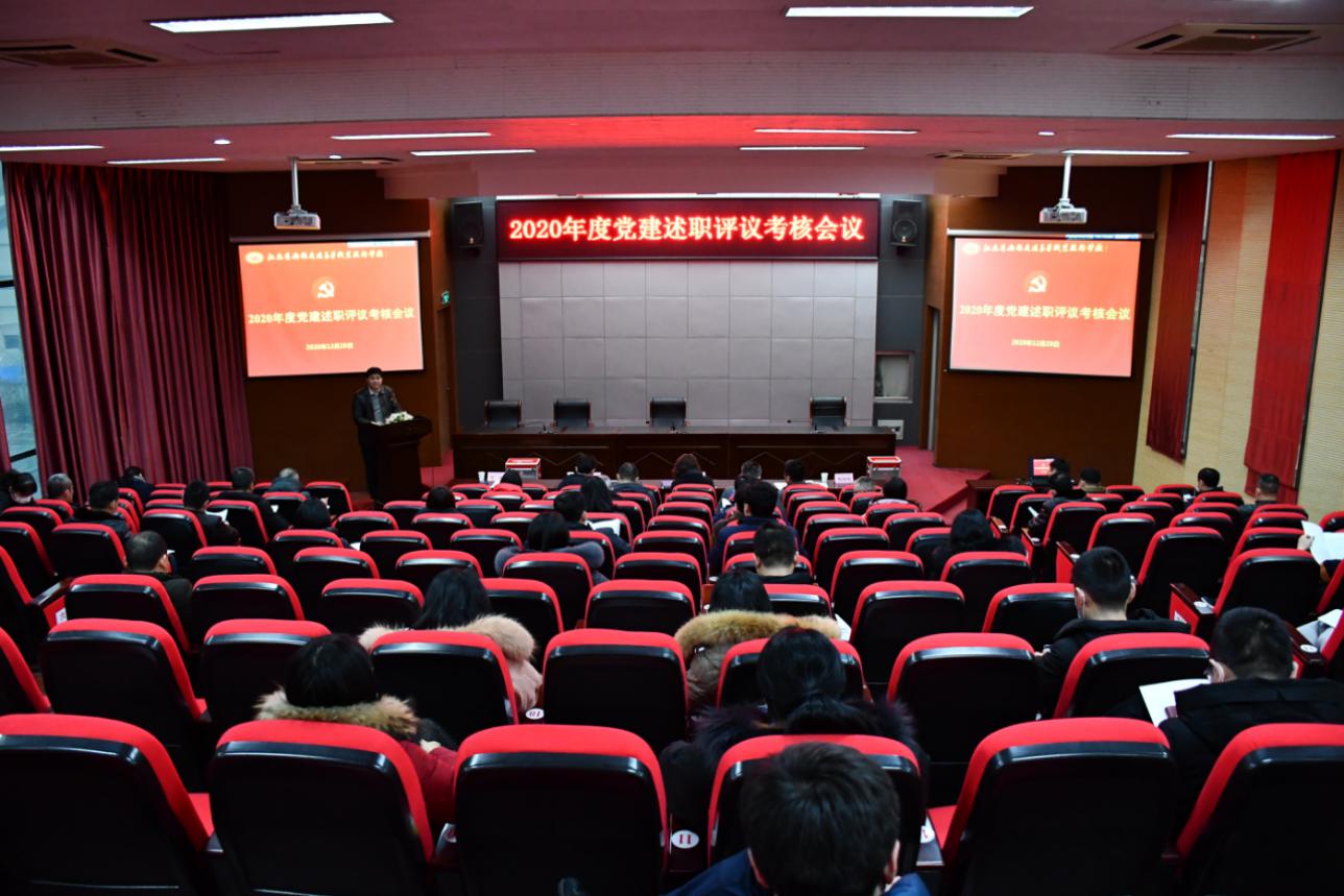 12月29日下午,学校在求实楼三楼学术报告厅召开2020年度党建述职评议考核会议,对11个党总支(直属党支部)的述职情况进行测评。校党委委员出席会议,会议由副校长邢勇同志主持,校党委副书记、纪委书记朱雨兰同志作总结讲话。学校各党总支(直属党支部)委员、党支部书记,各处室、院部主要负责人,各党总支(直属党支部)党员、群众代表等70余人参加了会议。