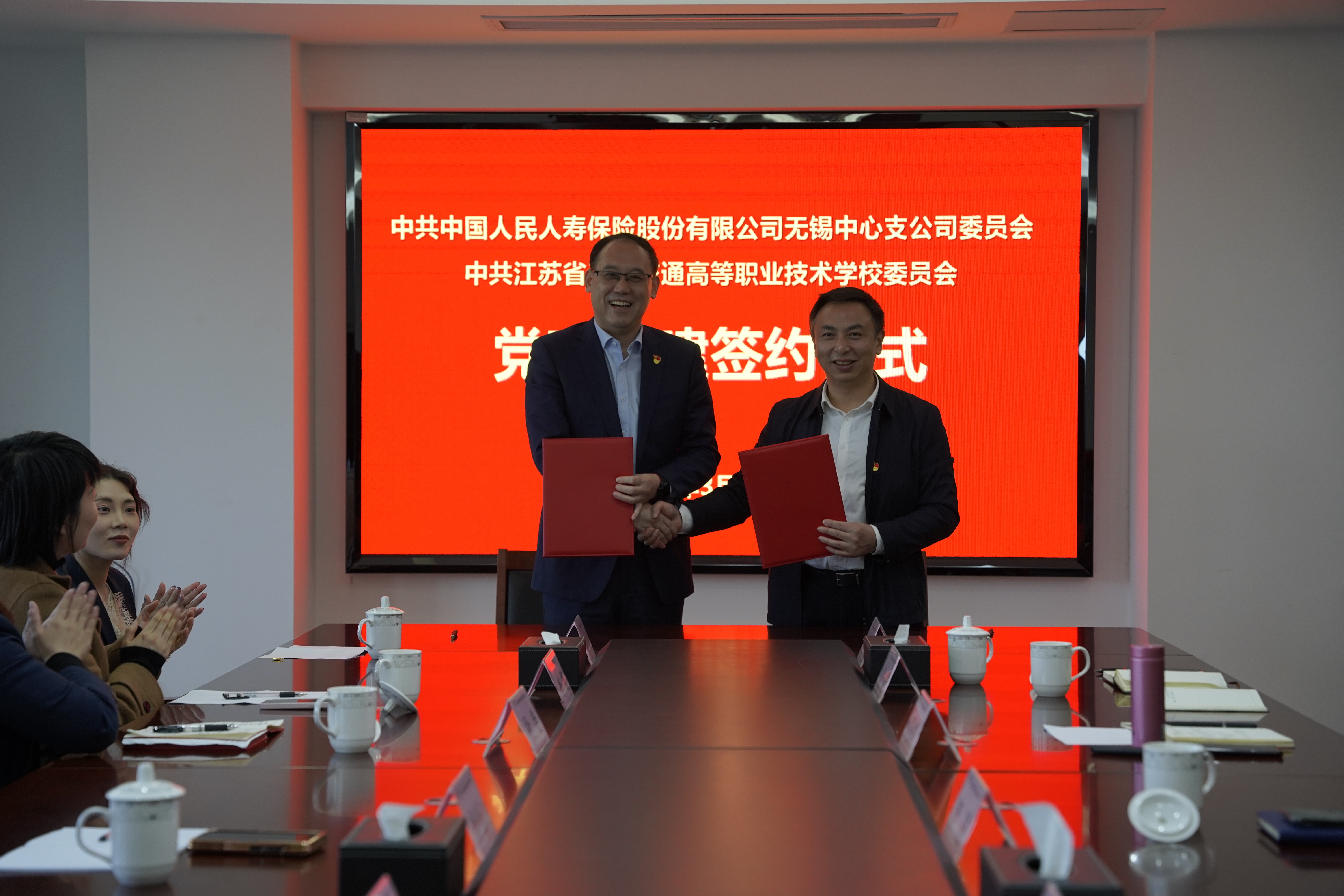 为深入学习贯彻习近平新时代中国特色社会主义思想,全面贯彻落实党的二十大精神,进一步巩固主题教育成果,激发党建活力,推动党建引领发展。3月12日下午,学校与中国人民人寿保险股份有限公司无锡中心支公司举行党建共建签约仪式。人保寿险无锡公司党委书记、总经理李光仁等,学校党委书记、校长李进等出席签约仪式。