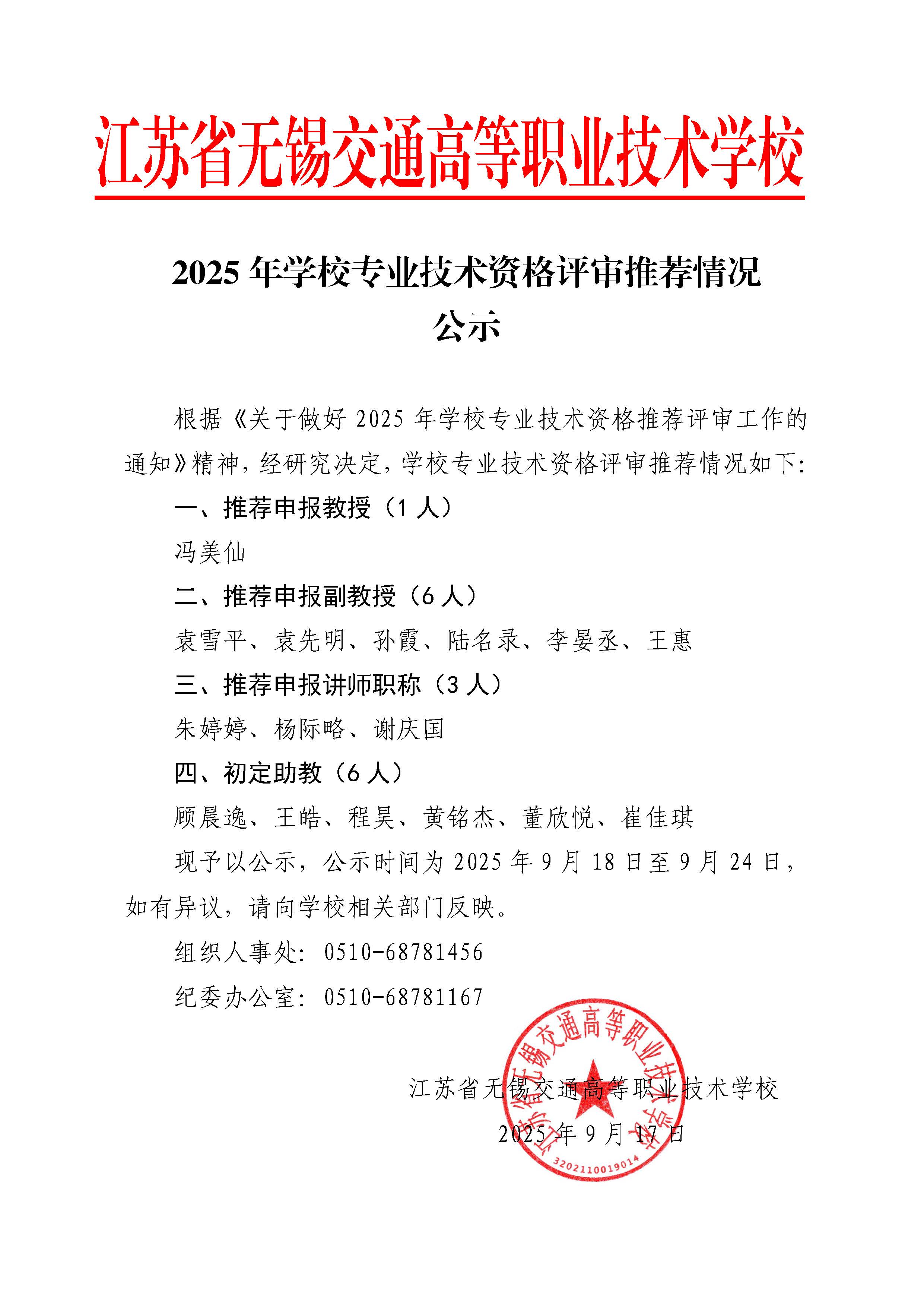 2025年学校专业技术资格评审推荐情况公示
