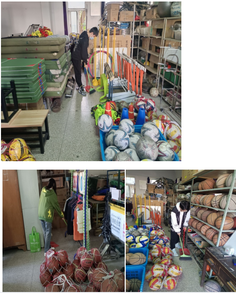 324日下午,根据班级活动方案,同学们到体育器材室进行打扫。在活动过程中,同学们个个精神饱满。同学们拿着扫把,拖把等打扫工具,女生负责扫地,擦桌子,男生负责拖地、整理运动器材。经过一个多小时的努力,体育器材室的面貌都焕然一新。